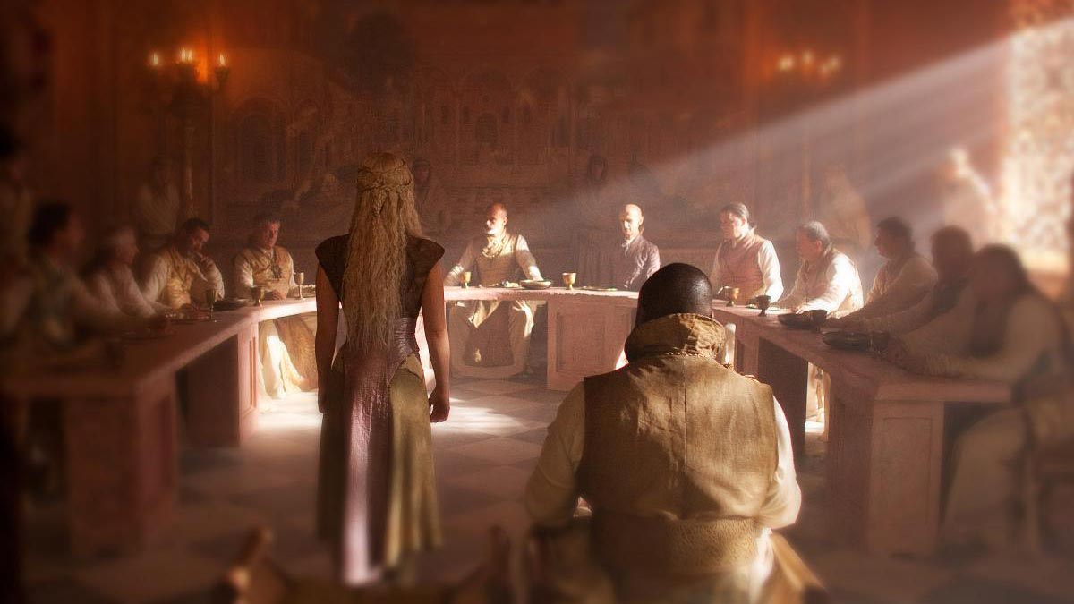 В Кварте колдун признается Дейенерис, что это он украл ее драконов, но дает ей возможность воссоединиться с ними, прежде чем убить Совет тринадцати и установить Даксоса в качестве короля. Теон представляет Лювину и его подданным обугленные трупы двух мальчиков, утверждая, что он выследил и убил Брендона и Рикона.