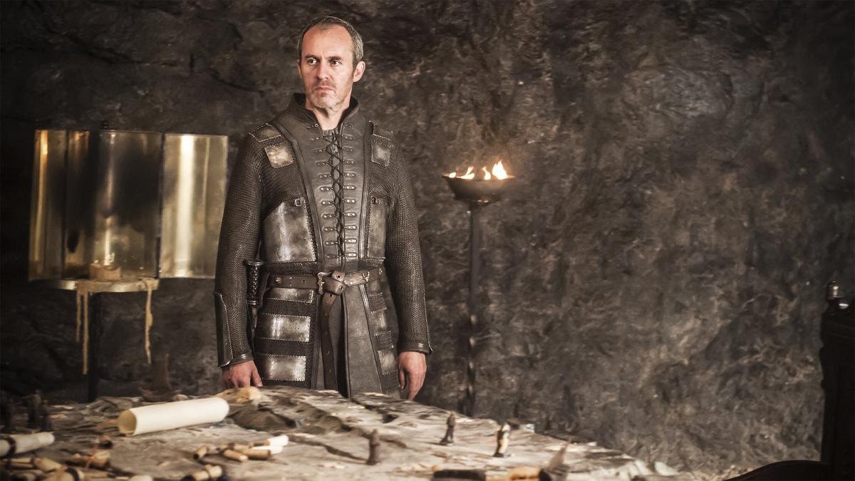 Сандор рассказывает Арье, что они держат путь к Близнецам, чтобы выкупить ее у Робба. Станнис отпускает Давоса, требуя уважения к Мелисандре, которая прибывает на Драконий Камень вместе с бастардом Роберта Джендри, соблазняет его и извлекает у него кровь тремя пиявками. После магического ритуала Станнис бросает пиявок в огонь, называя трех узурпаторов: Бейлона, Робба и Джоффри.