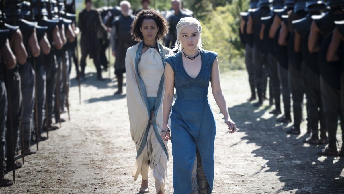 В Речных Землях Арья и Пес забирают у Полливера ее меч, Иглу, убивая его и его людей. В Эссосе Дейенерис ведет свою армию к Миэрину, последнему из трех больших городов рабов, хотя ее беспокоит, что ее драконы становятся все менее ручными по мере роста.