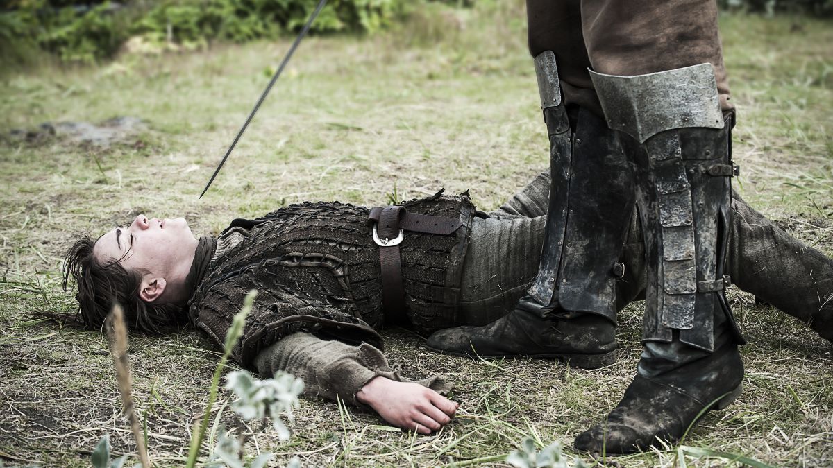 На Королевском тракте Пес ловит Арью, упражняющуюся в танце на воде - ее боевом искусстве. Он злит ее, насмехаясь над этим стилем боя и ее учителем Сирио Форелем.