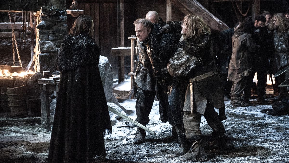 Эдд прибывает с Тормундом и группой одичалых, захватывая Торна и других мятежников. Томмен просит Серсею научить его быть сильным. Тирион узнает, что Астапор и Юнкай вернулись к рабству, и выпускает Рэйгала и Визериона из их цепей.