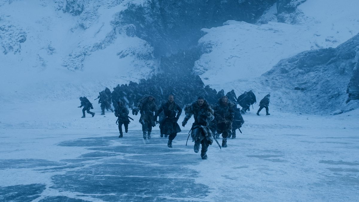 На Драконьем Камне Тирион советует Дейенерис о предстоящих переговорах с Серсеей. За стеной Джон возглавляет отряд, который должен захватить мертвеца и доставить его на юг в качестве доказательства существования Белых Ходоков. После успешного захвата одного, группу окружает армия мертвых. Джон велит Джендри вернуться в Восточный дозор и послать ворона к Дейенерис с просьбой о помощи. Торос замерзает за ночь. Дейенерис прибывает и спасает группу с помощью своих драконов. Король Ночи, предводитель белых ходоков, бросает ледяное копье в Визериона, одного из драконов Дейенерис, и убивает его. Дейенерис улетает вместе с отрядом, но не может спасти Джона. Вмешивается Бенджен Старк и жертвует собой, чтобы позволить Джону сбежать. Когда Джон и Дейенерис воссоединяются, Джон обещает себя и Север Дейенерис, как королеве. Король Ночи воскрешает Визериона, делая дракона частью своей армии.